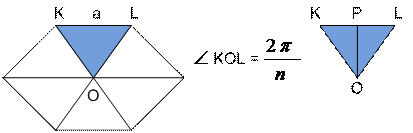 правильного n-угольника со стороной а. Разобьем его на n треугольников.