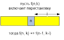 Рассмотрим все перестановки из n элементов с k инверсиями, число которых равно f(n, k). У нас имеется n + 1 позиция для вставки числа n + 1 для получения перестановки из n + 1 элемента. Пусть происходит вставка