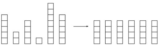 You are given a sequence of n (n < 100) integers. Each number denotes the height of a stack of bricks. If we put the stacks in a line as in the illustration below, we would see stacks of uneven heights. Suppose a “move” is made by picking up one brick from one stack and putting it on another, compute the minimum number of moves to rearrange the bricks such that all stacks have the same height.
