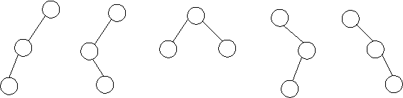 Пусть n = 3. Существует 5 разных бинарных деревьев с 3 вершинами: