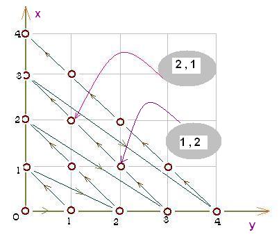 находится на диагонали номер x + y. Для достижения этой диагонали