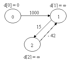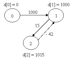 место неравенство: d[1] > d[2] + w(2, 1) (1000 > 1015 – 42). Значит