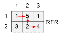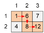 проходить плитки пола (ячейки массива) сверху вниз и слева направо, положив