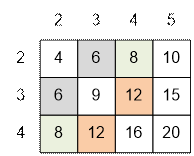 example. Let’s write the multiplication table for the matrix [2; 4] * [2; 5].