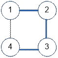 При запуске поиска в глубину из вершины 1 обход пройдёт по рёбрам: (1, 2), (2, 3), (3, 4).