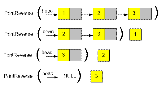 Implement the PrintReverse function as follows: first, print the elements of the tail of