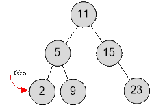 наименьшим значением следует стартовать с корня и двигаться по указателям всегда