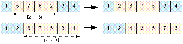 ·        Последовательность коров в позициях a1, …, a2 слева реверсивно меняют свой порядок. Затем последовательность коров в позициях b1, …, b2 слева реверсивно меняют свой порядок.