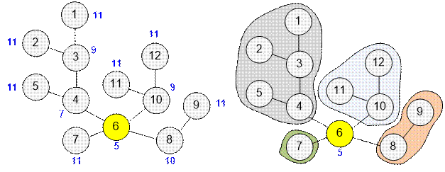 Рассмотрим дерево из примера. Вершина 6 является центроидом.