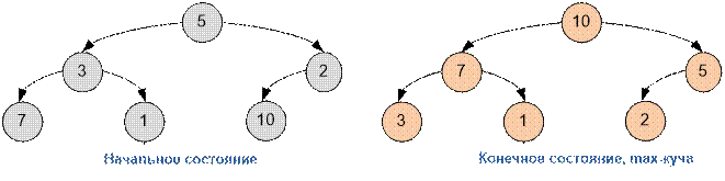 элементом, меняем его местами с максимальным сыном и далее рекурсивно