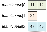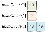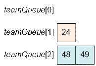 teamQueue[2] queue, now teamQueue[2] = {47, 48, 49}.