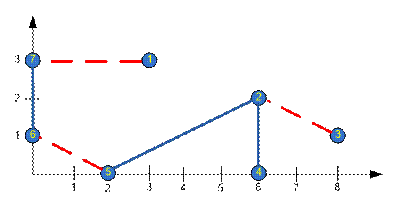 пример, приведенный в условии. Синим обозначены уже построенные магистрали. Красным –
