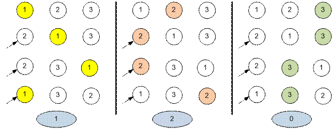 камешка и где она может угадывать местоположение камешка после каждого обмена.