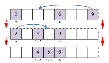 первом случае в дальнейшем следует переместить корову с позиции b на a + 1. Во