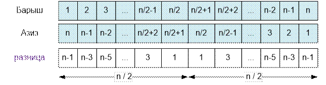 массиве “разница” равна (72 – 1) / 2 =