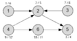 the input graph. Calculate the in-degrees for all vertices. For each edge (a, b)
