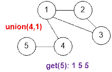 5 11 union 1 2 get 3 get 2 union 2 3 get 2 union 1 3 get 5 union 4 5 get 5 union 4 1 get 5 |