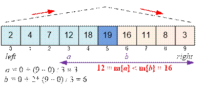 m[a] ≥ m[b], то поиск продолжаем на отрезке [left; b];