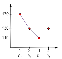 ·        f(2) = (2 – 1) * 30 + (2 – 2) * 10 + (3 – 2) * 20 + (4 – 2) * 40 = 130,