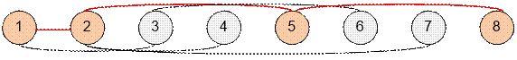 Путь от 1-го до 8-го маршрутизатора имеет вид: 1 2 5 8.