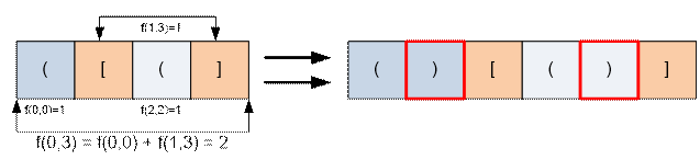 типа скобки si. При i > j положим dp[i][j] = 0. Далее будем писать si ≈ sj, если si – открывающаяся,