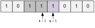 раз заменим 1 на 0 на позициях [k; q) двигаясь справа налево.