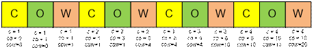 COW появляется как подпоследовательность, необязательно непрерывная, во входной