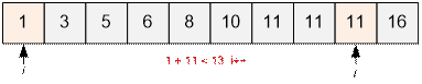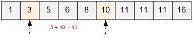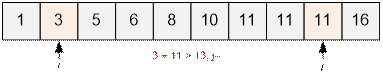 алгоритма. Значение x = 13, ищем два числа с суммой 13.