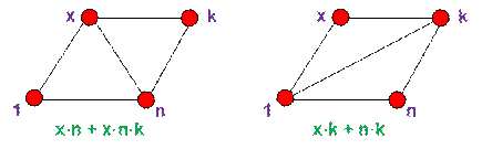 triangles (1, x, n) and (n, x, k) with the pair (1, x, k) and (1, n, k). The total weight of the
