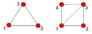 polygon is a triangle with vertices 1, 2, 3. Its weight is 1 * 2 * 3 = 6.
