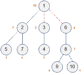 For the root (vertex 1), the size of the entire tree is even. However, there is no edge connecting vertex 1 to its parent, so we must subtract 1 from the result obtained using the above algorithm.