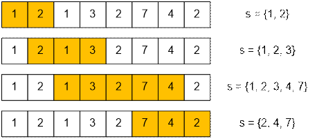 from this segment will be stored in a set s. For each value of i,