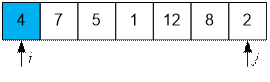 Инициализируем указатели i = 0 на начало массива и j = n –