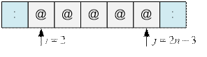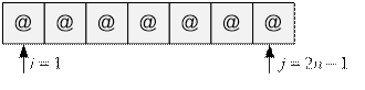 указатели l = 1 на начало и r = 2 * n – 1 на конец строки.