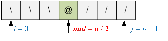 ·        в позициях от mid + 1 до n – 1  символы ‘/’;