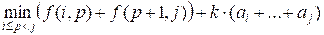 dp[i][j] = min(dp[i][j], f(i, p) + f(p + 1, j) +