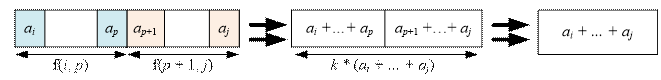…, aj], после чего объединить элементы ai + … + ap и ap+1 + … + aj. Значение p следует выбрать таким образом, чтобы стоимость