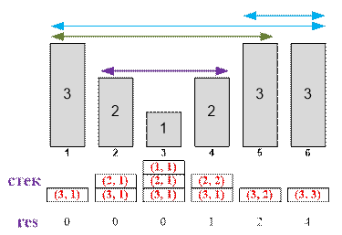 ·        When a new element appears, we can immediately determine how many pairs it forms: this number is exactly count for the element at the top of the stack.