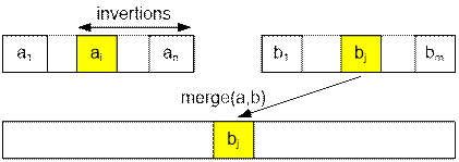 переносится в сливаемый массив. Тогда утверждается, что bj образует инверсии только с элементами ai, …, an, и таких инверсий имеется в точности n – i