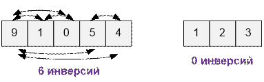 последовательности. Искомое число инверсий можно найти за время O(nlog2n), промоделировав сортировку слиянием (merge sort).