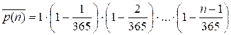 вероятность того, что хотя бы у двух человек из n дни рождения совпадут,