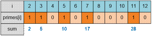 Перебираем числа, начиная с 2. Если текущее число простое, прибавляем его