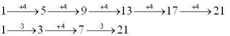 либо умножить на три, либо к текущему числу прибавить 4. За каждое умножение