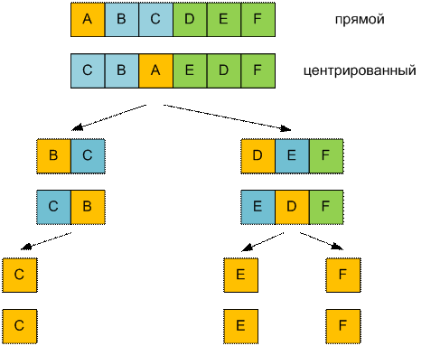 соответственно прямой и центрированный обход дерева. Вершины дерева