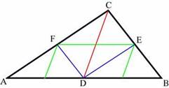 треугольника, проведя медиану к его большей стороне (на рисунке сверху такое