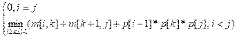 m[i, j] = m[i, k] + m[k + 1, j] + p[i 1] * p[k] * p[j]