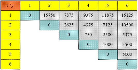 Для умножения шести входных матриц достаточно выполнить m[1,6] = 15125 операций  умножения. Оптимальная последовательность умножений имеет вид: