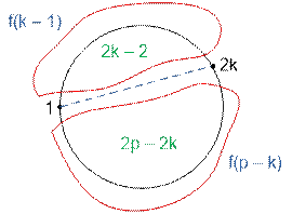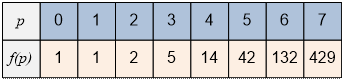 f(p) = f(0) * f(p – 1) + f(1) * f(p – 2) + … + f(k – 1) * f(pk) + … + f(p – 1) * f(0),