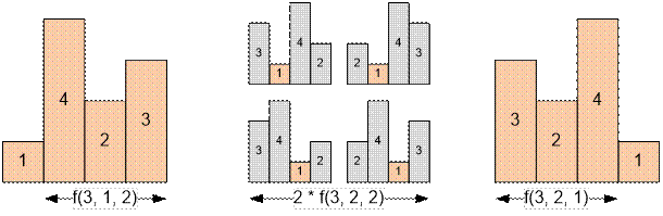 f(n, l, r) = f(n – 1, l – 1, r) + f(n – 1, l, r – 1) + (n – 2) * f(n – 1, l, r),