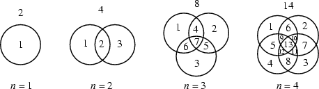 рисунке 1 четыре окружности могут разделить плоскость максимум на 14 областей,